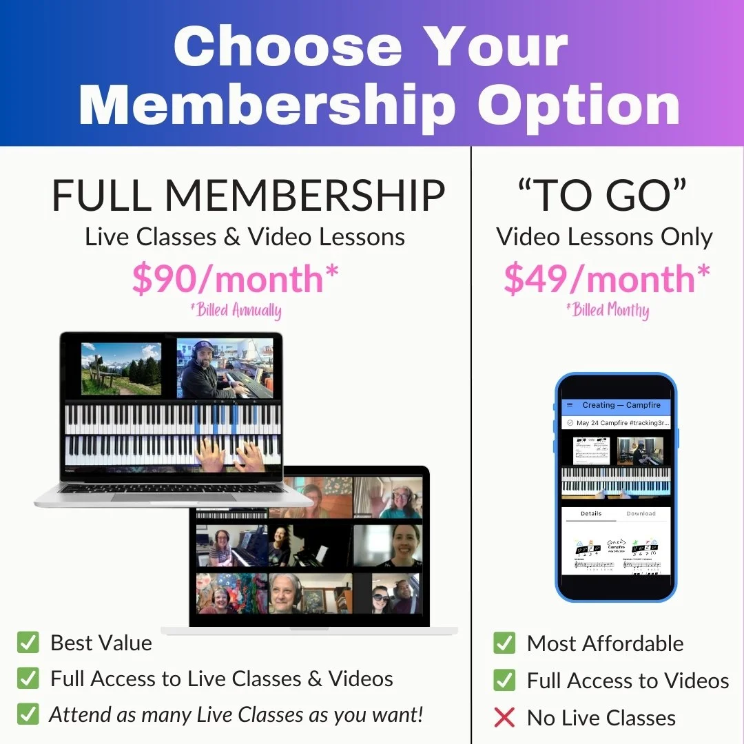 ✅ Live Classes & Events ✅ On-Demand Video Lessons ✅ Online Community ✅ Comprehensive Curriculum ✅ Songs You Love